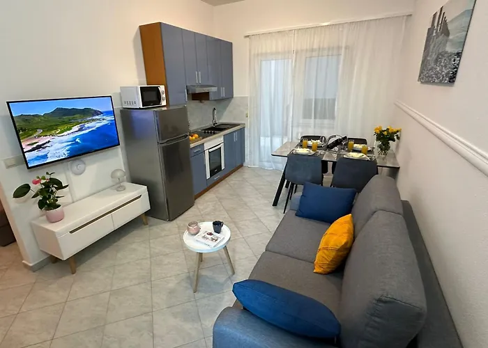 Tento apartmán se nachází v blízkosti Stomarica Beach, 1 km od centra města. Nejbližší restaurace je La bomba croatia, která je jen 400 metrů od apartmánu a kde podávají jídlo evropské kuchyně a chorvatské kuchyně.
